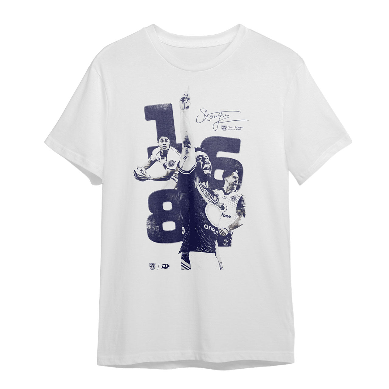 Farewell club legend and Warrior #168 Shaun Johnson with your very own limited edition t-shirt.